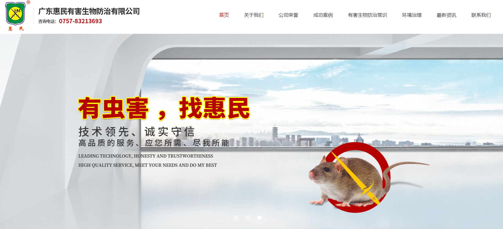 現(xiàn)在和大家一起分享滅鼠防治網(wǎng)站制作案例之廣東惠民有害生物防治有限公司。