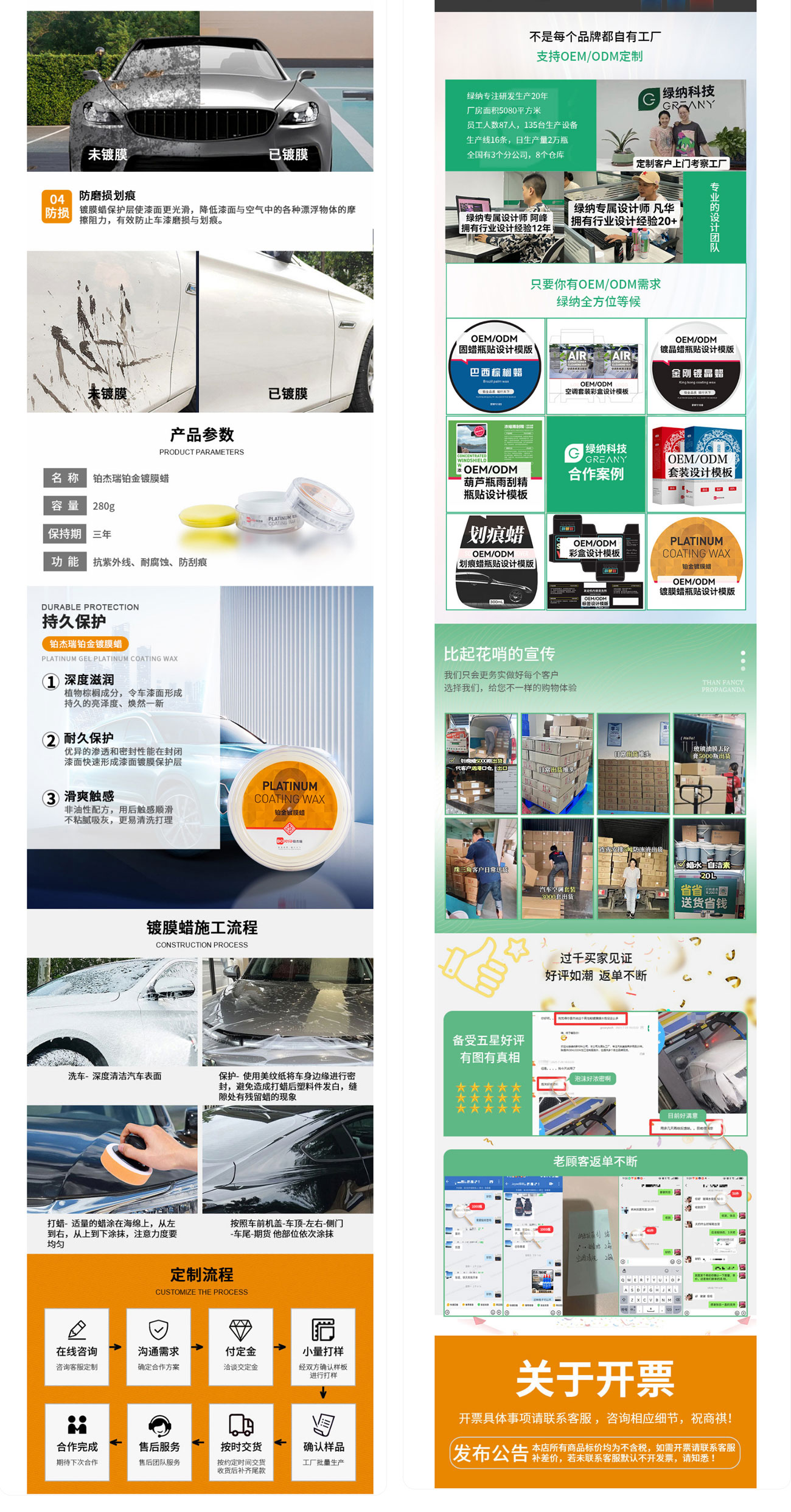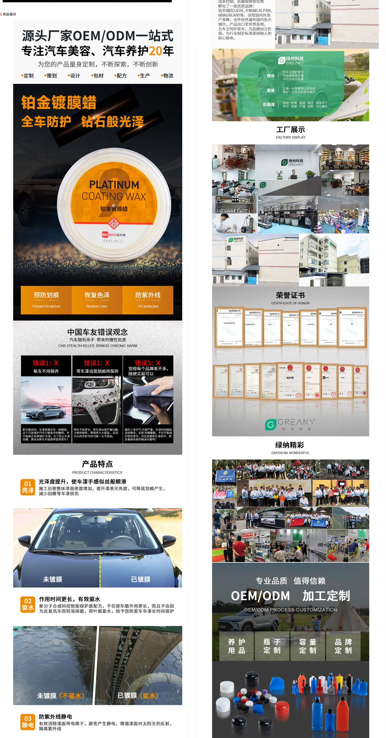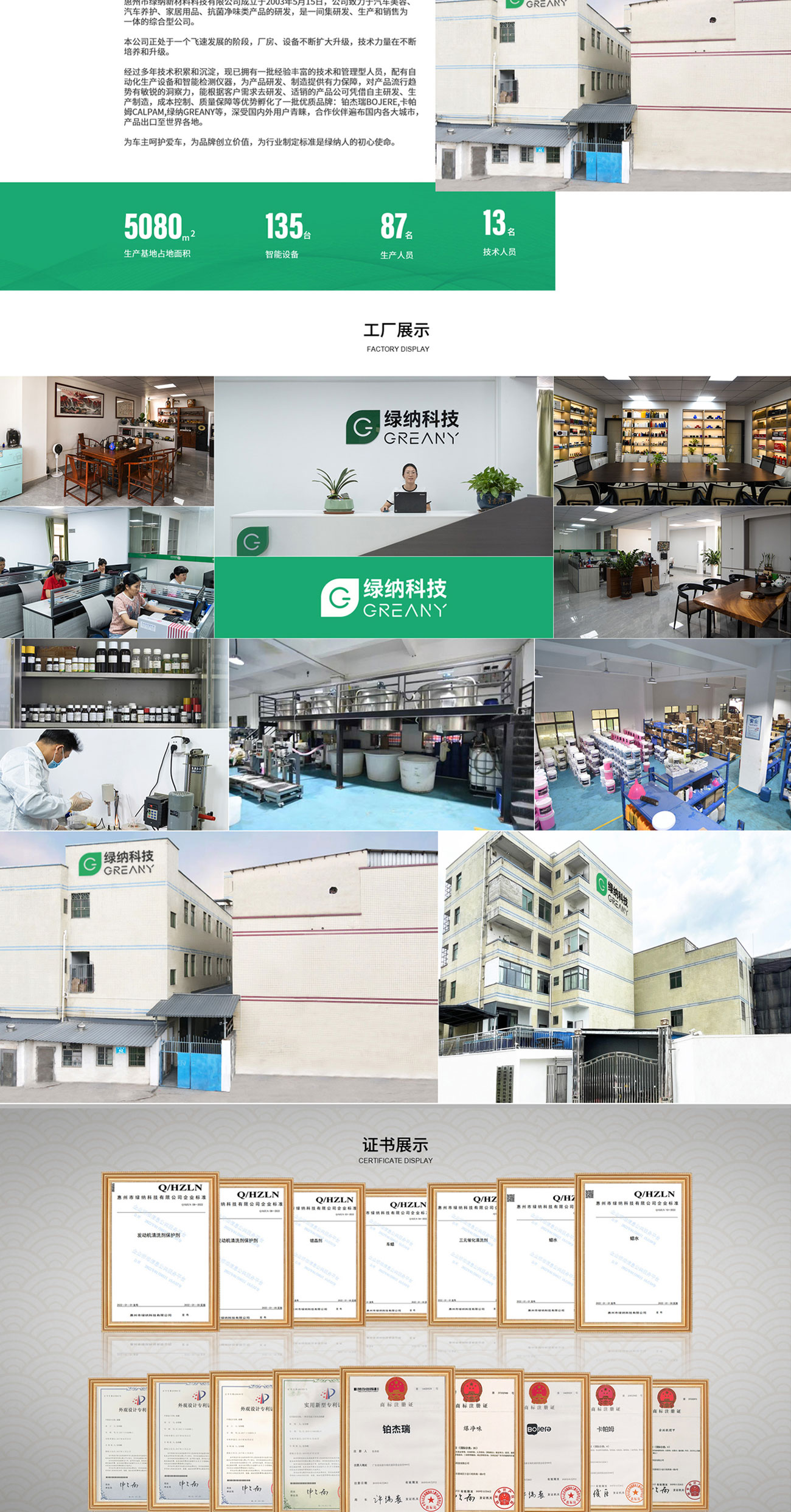 惠州市綠納新材料科技有限公司成立于2003年5月15日,公司致力于汽車美容、汽車養(yǎng)護(hù)、家居用品、抗菌凈味類產(chǎn)品的研發(fā),是一間集研發(fā)、生產(chǎn)和銷售為一體的綜合型公司。為車主呵護(hù)愛車,為品牌創(chuàng)立價(jià)值,為行業(yè)制定標(biāo)準(zhǔn)是綠納人的初心使命。